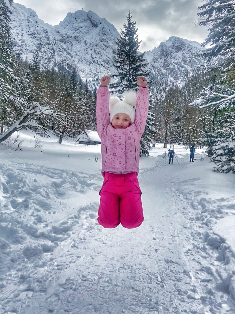 Wybierając się w Tatry w tegoroczne ferie zimowe nawet nie sądziliśmy, że nasz wyjazd będzie aż tak udany pod względem pogody! Pierwszy dzień powitał nas prawdziwą śnieżną zamiecią i okropnym wiatrem i prognozy wskazywały na to, że taka pogoda utrzyma się przez cały tydzień. Jakie było zatem nasze zaskoczenie, gdy już od drugiego dnia naszego pobytu w Tatrach pogoda się ustabilizowała, przestało wiać, a sypiący śnieg pojawiał się już tylko sporadycznie. Śnieg na szlakach po kolana, pogoda oscylująca w granicach minus 2-3 stopni – warunki idealne do pieszych wędrówek! W poprzednim wpisie (kliknij tutaj) opisałam w jaki sposób ubieraliśmy dzieci na takie całodniowe zimowe wyjścia w góry i co warto zabrać ze sobą na taką wędrówkę. Dziś opis naszych szlaków: prostych, a jednocześnie bardzo klimatycznych, dzięki którym mogliśmy poczuć klimat prawdziwej zimy w Tatrach! Nasze córeczki (Sara 6 lat, Klara 2,5) radziły sobie na niżej opisanych trasach bez problemu i to właśnie w odniesieniu do nich planowaliśmy nasze wyprawy.