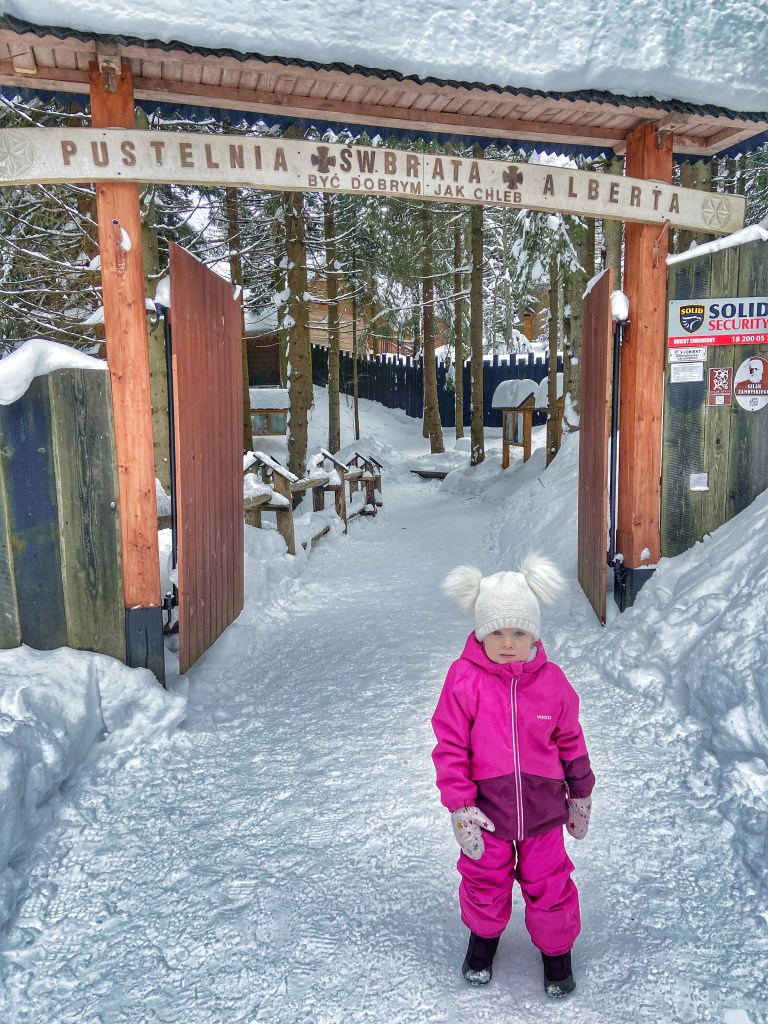 Tym razem wyruszamy do Kuźnic i mijając kolejkę do kolejki na Kasprowy Wierch (stosunkowo krótka kolejka!), ruszamy na szlak prowadzący na Halę Kondratową. Droga pnie się w górę i jest dość ślisko, ale powoli dochodzimy do Pustelni Świętego Brata Alberta. Spędzamy tu dobre pół godziny: to doskonałe miejsce aby się wyciszyć, odetchnąć, pomodlić i po prostu chwilę odpocząć w ciszy. Zwiedzamy też chatę, w której mieszkał święty Brat Albert, kupujemy pamiątki (być z dziećmi i wyjść bez pamiątek się przecież nie da;)) i ruszamy dalej szlakiem niebieskim na Halę Kondratową. I znów cisza i spokój – droga wiedzie przez las, z sankami przejechać jest momentami dość trudno, mijamy pojedynczych turystów na nartach, poza tym pustki.