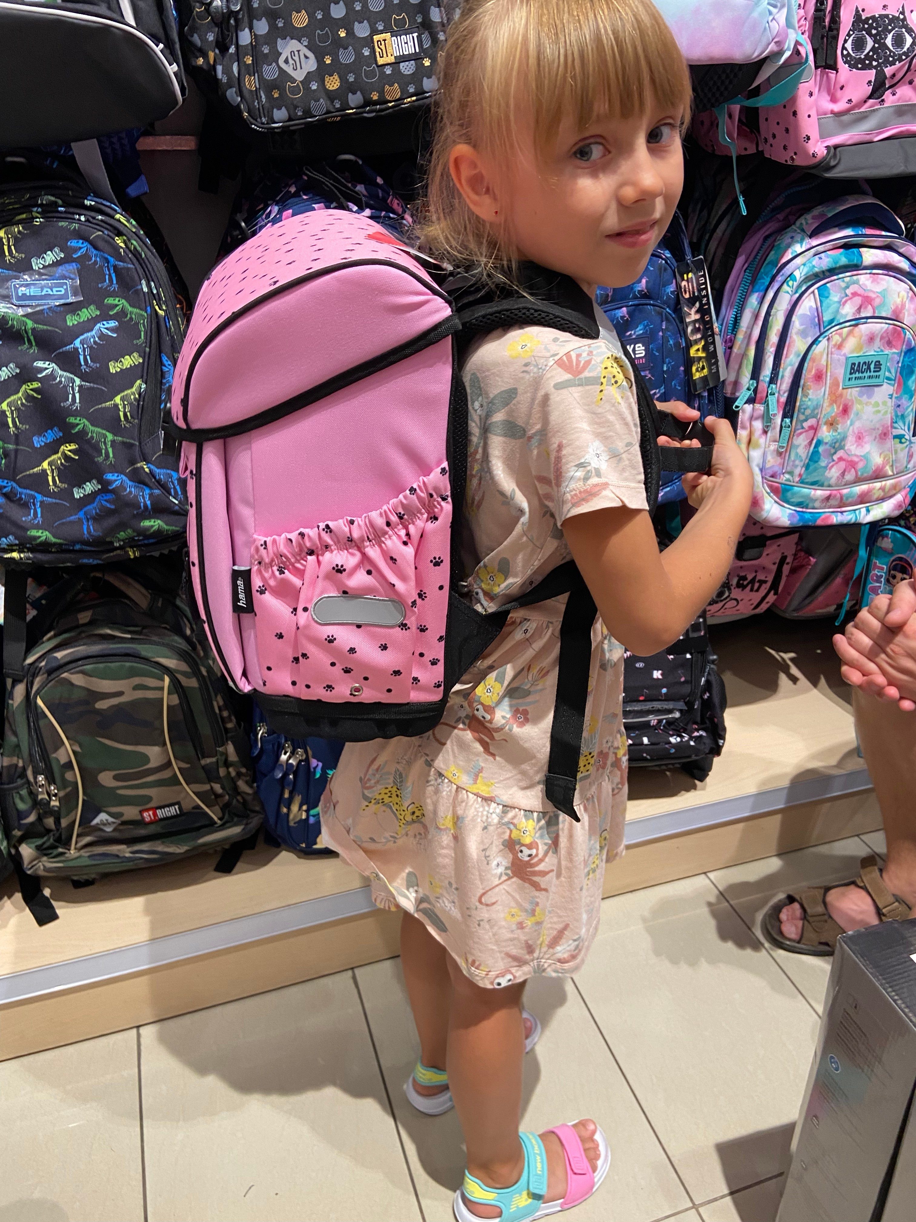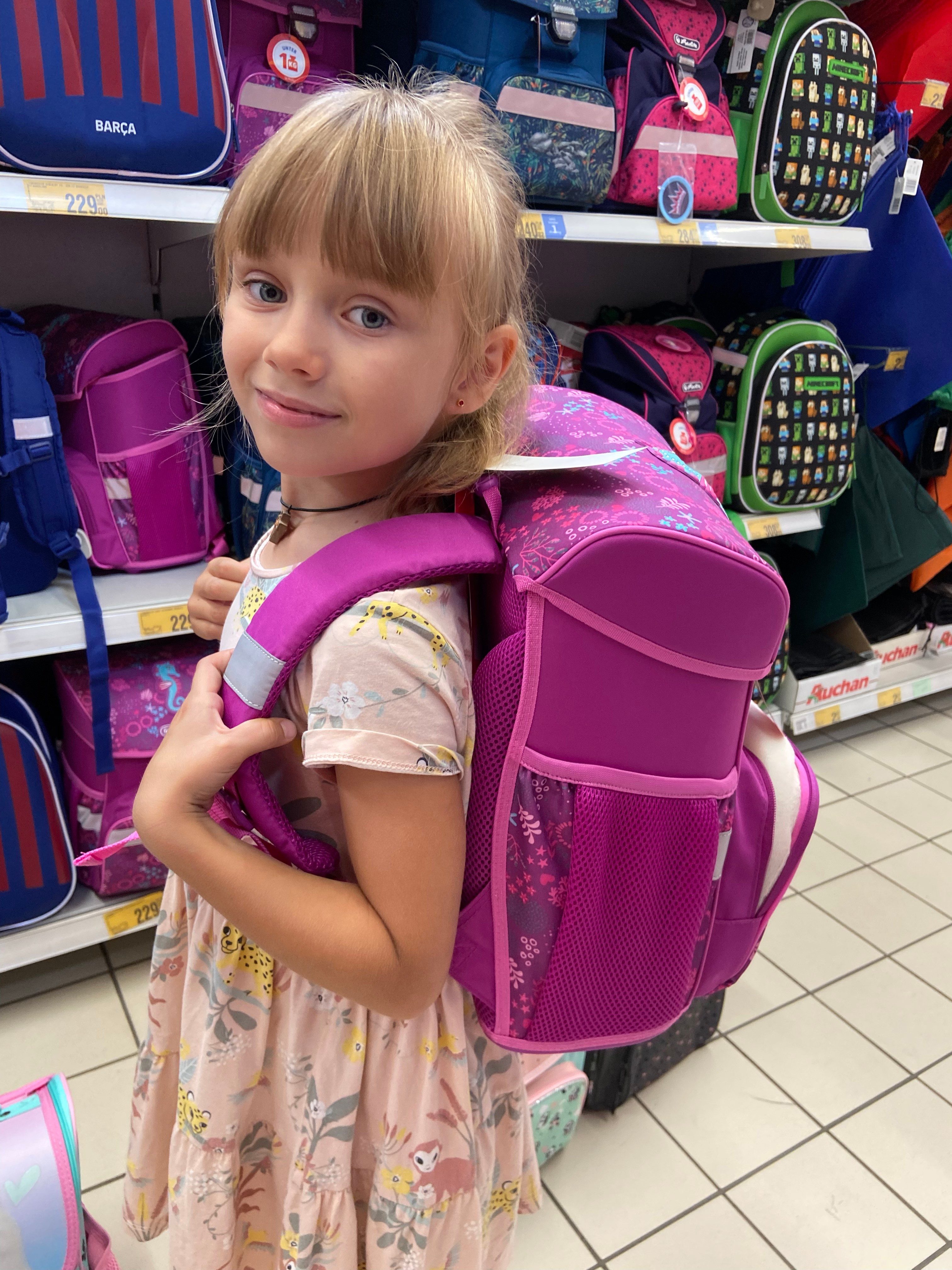 Na ten ostatni punkt szczególnie warto zwrócić uwagę, bo jeśli przeciętny pierwszoklasista (jak nasza Sara) waży około 22 kilogramów, to plecak wraz z zawartością nie powinien ważyć więcej niż 2,2 – 3,3 kg. A przecież waga samego tornistra to nie wszystko! Do środka przecież trzeba włożyć książki, zeszyty, piórnik, śniadaniówkę, bidon i czasem całą masę innych rzeczy, a stąd już bliska droga do wady postawy. Dlatego od razu uczulam: sprawdzajcie dzieciom plecaki! Czasem połowa ich zawartości spokojnie mogłaby zostać w domu. 😉