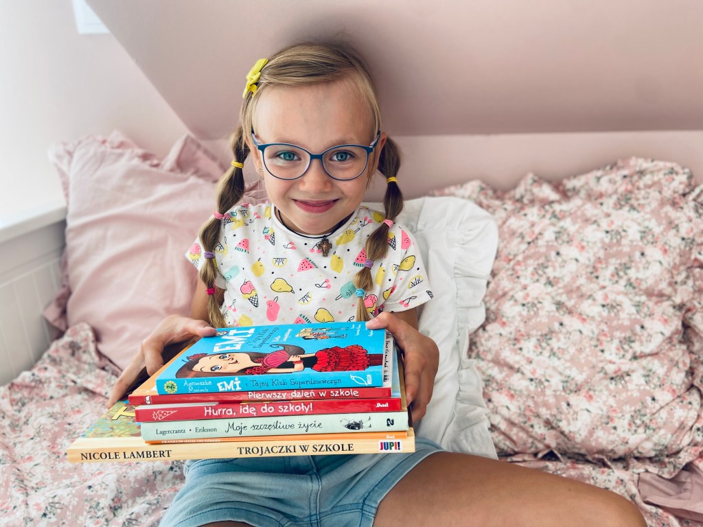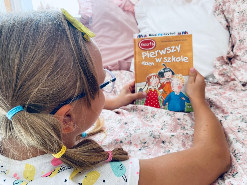 Niedawno pokazywałam wam książki Klarci, przygotowujące ją do nowej przedszkolnej przygody. Dziś czas na lektury dla wszystkich pierwszaków: tych, którzy z lekkim niepokojem spoglądają w przyszłość i martwią się pierwszą klasą, jak i tych, którzy nie mogą się wprost doczekać! Sarka zdecydowanie należy do tej drugiej grupy: od kilu tygodni wspomina, że jest bardzo ciekawa nowej pani, koleżanek i wszystkiego, co się wiążę z pierwszą klasą. Mam pewne przypuszczenia, że poniekąd wpływ na to miały książki, które przeczytała (samodzielnie lub ze mną) w trakcie tych wakacji. Dzielimy się zatem z wami naszymi pierwszakowymi pozycjami. 🙂
