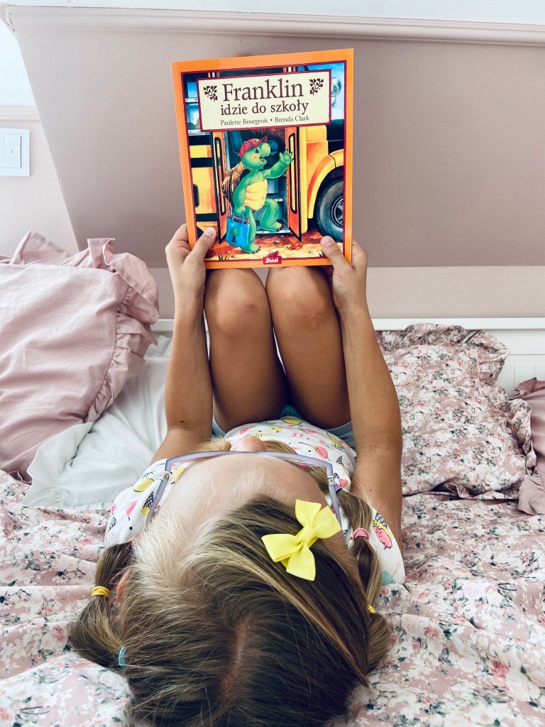 Franklina chyba nikomu nie trzeba przedstawiać. W tym tomie także i on przekroczy szkolny próg po raz pierwszy. I z tego powodu budzi się przed czasem, nie może przełknąć śniadania i kręci go w brzuchu ze zdenerwowania… Na szczęście wszystko dobrze się kończy, a szkoła okazuje się być naprawdę super! Polecamy zarówno do samodzielnego czytania, jak i do wspólnej lektury. Książka jest też dobrą okazją do rozmowy o tym, że czasem strach bierze nad nami górę i to zupełnie normalne mieć chwile zdenerwowania. Z odpowiednim wsparciem, rozumieniem swoich uczuć i emocji można jednak wszystko pokonać.